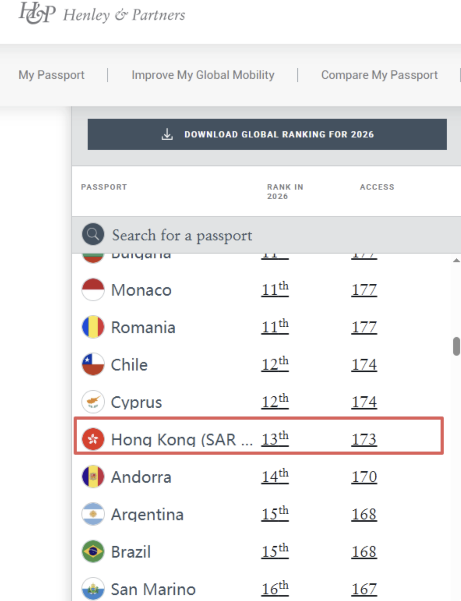 2026年全球护照榜单更新,香港护照排名涨了,香港身份会不会更难拿?